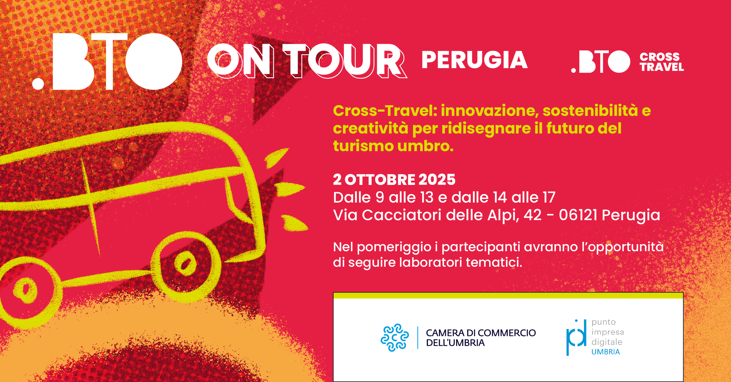 Si svolgerà a Perugia il prossimo giovedì 2 ottobre, presso la Camera di Commercio dell’Umbria, l’incontro “BTO On Tour”, un’iniziativa di formazione itinerante di BTO – Be Travel Onlife, realizzata in collaborazione con il Sistema delle Camere di Commercio italiane.